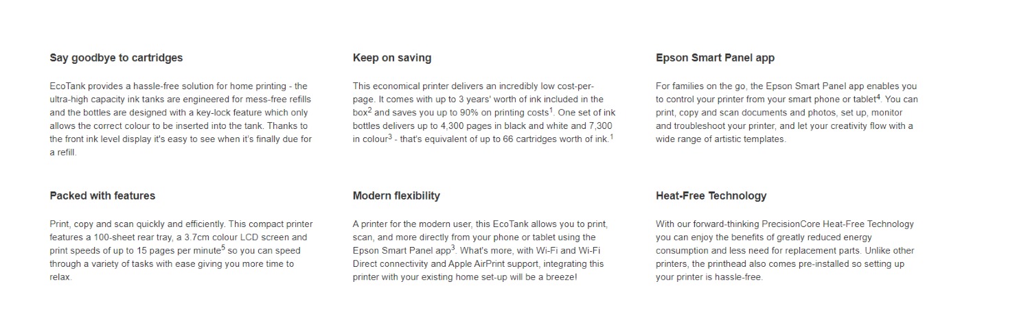 - EcoTank ink system – Ultra-low printing cost with refillable, spill-free ink tanks.